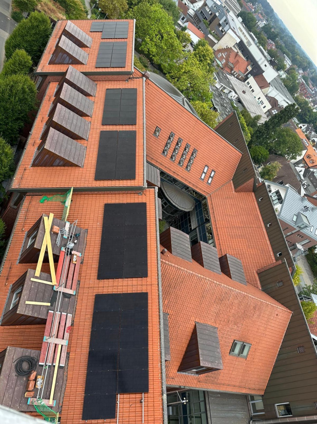 Wir haben ein anspruchsvolles Dach. Die Jungs von Sun-Powerd haben sich sehr engagiert und kreativ an die Arbeit gemacht und uns eine optimale 7,5 kW-Anlage auf's Dach gesetzt.